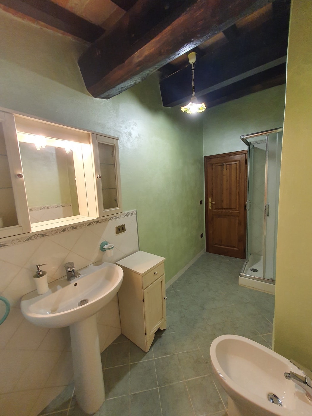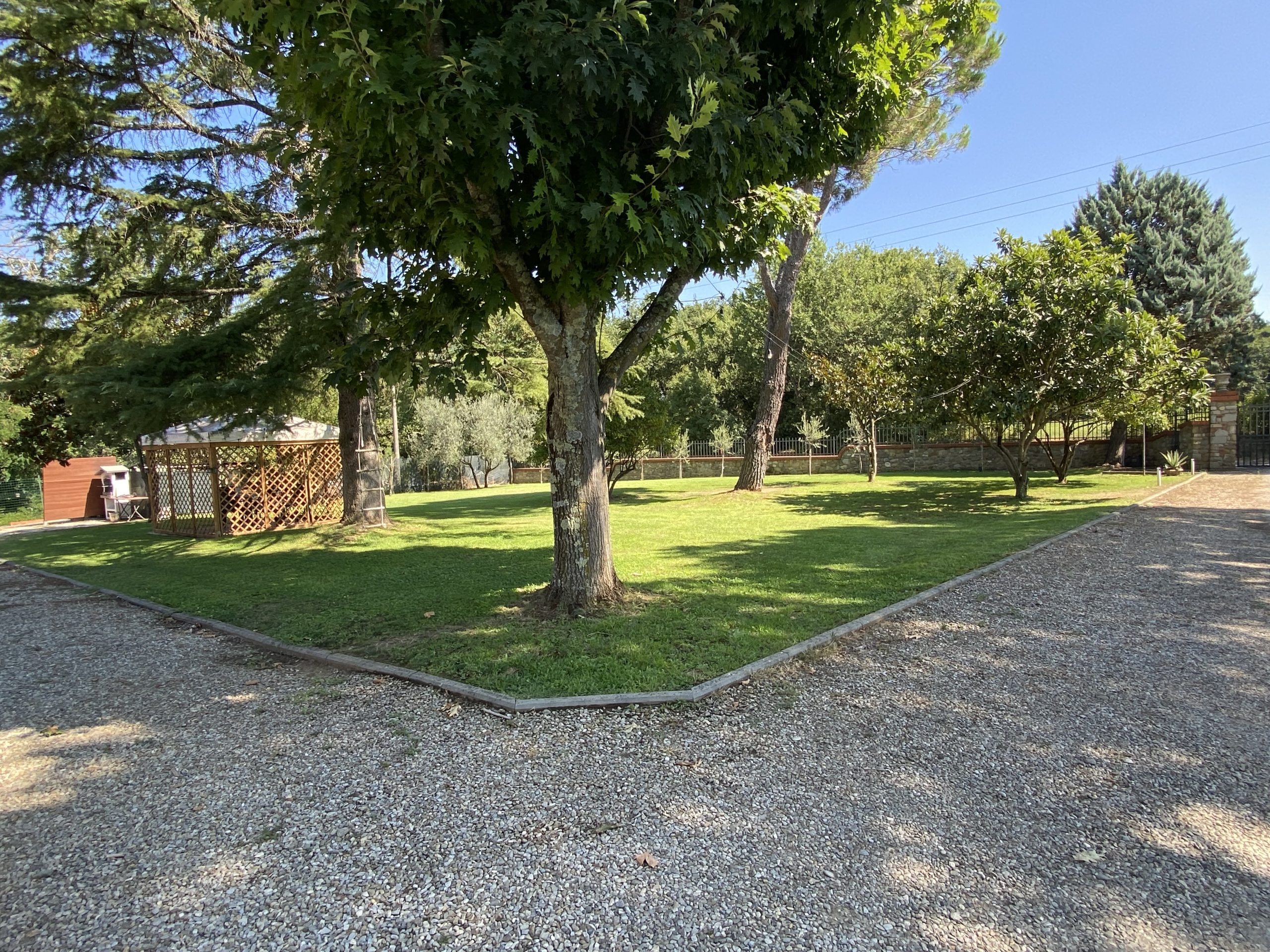 L’accesso alla villa avviene da cancello automatico ed è presente un parcheggio interno riservato ombreggiato. Da una scala esterna in tipico stile toscano si accede all’appartamento di circa 100 mq composto da 3 camere da letto, un ampio soggiorno con cucina, 2 bagni e arredo d’epoca con parquet, soffitti con travi a vista e pianelle.