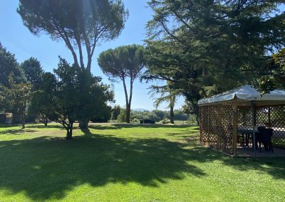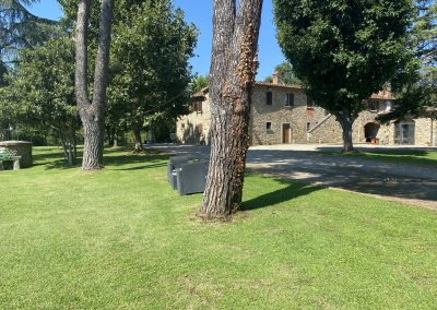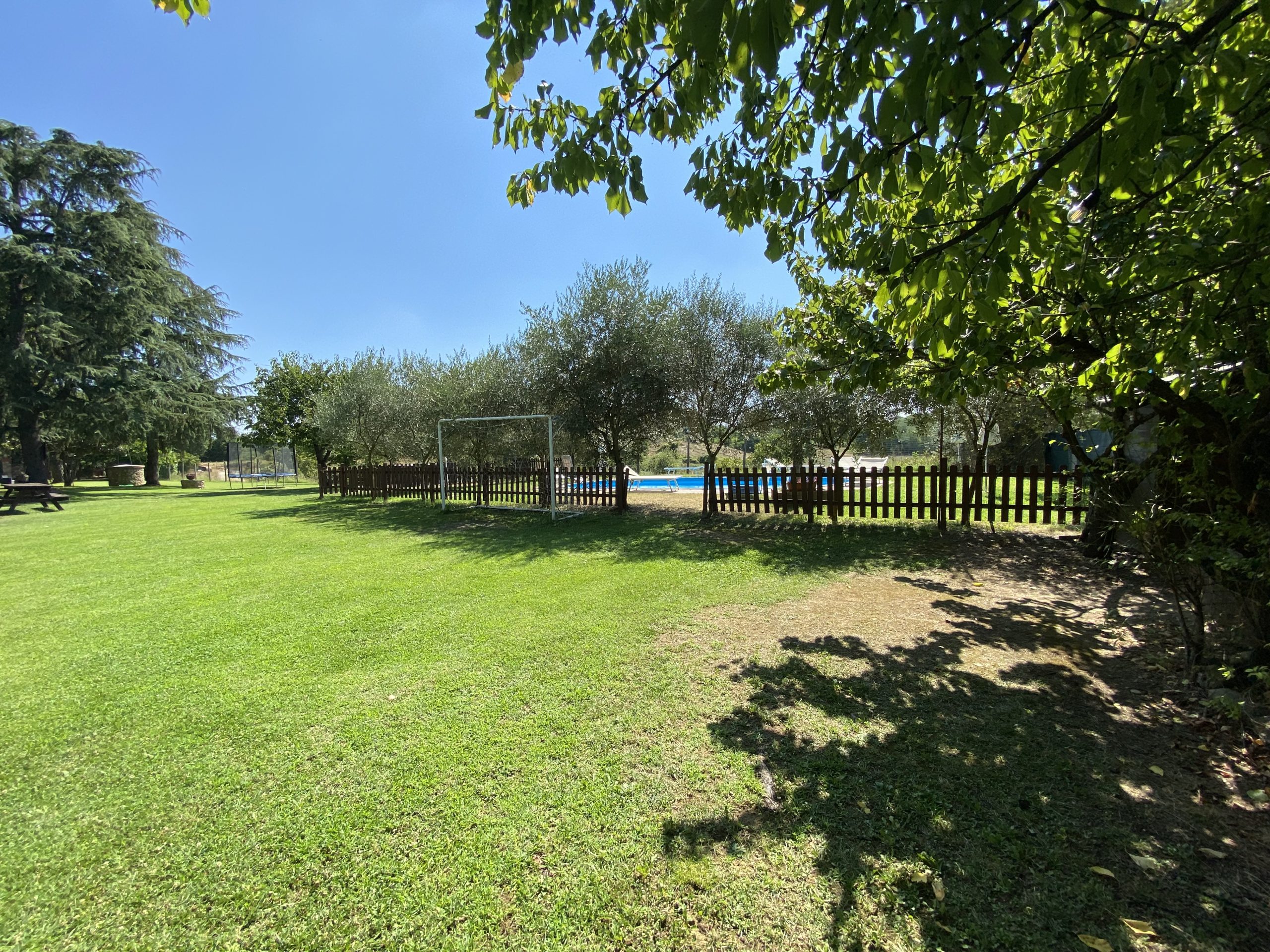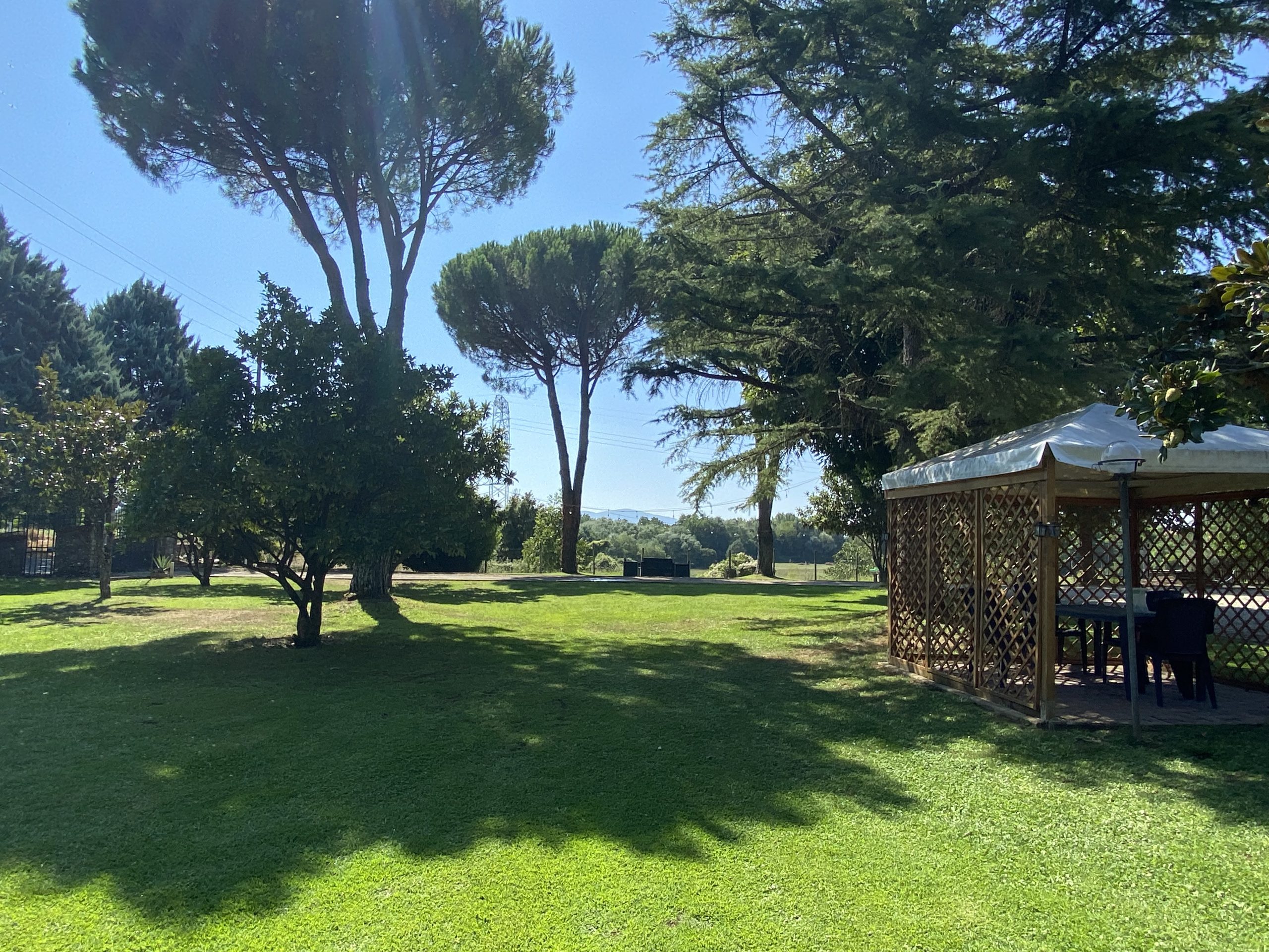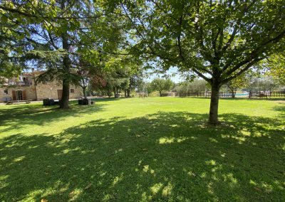 L’edificio è circondato da un parco di 5.000 mq dove è possibile rilassarsi all’ombra di alberi secolari o godere di una splendida piscina recintata con vista sulla campagna.