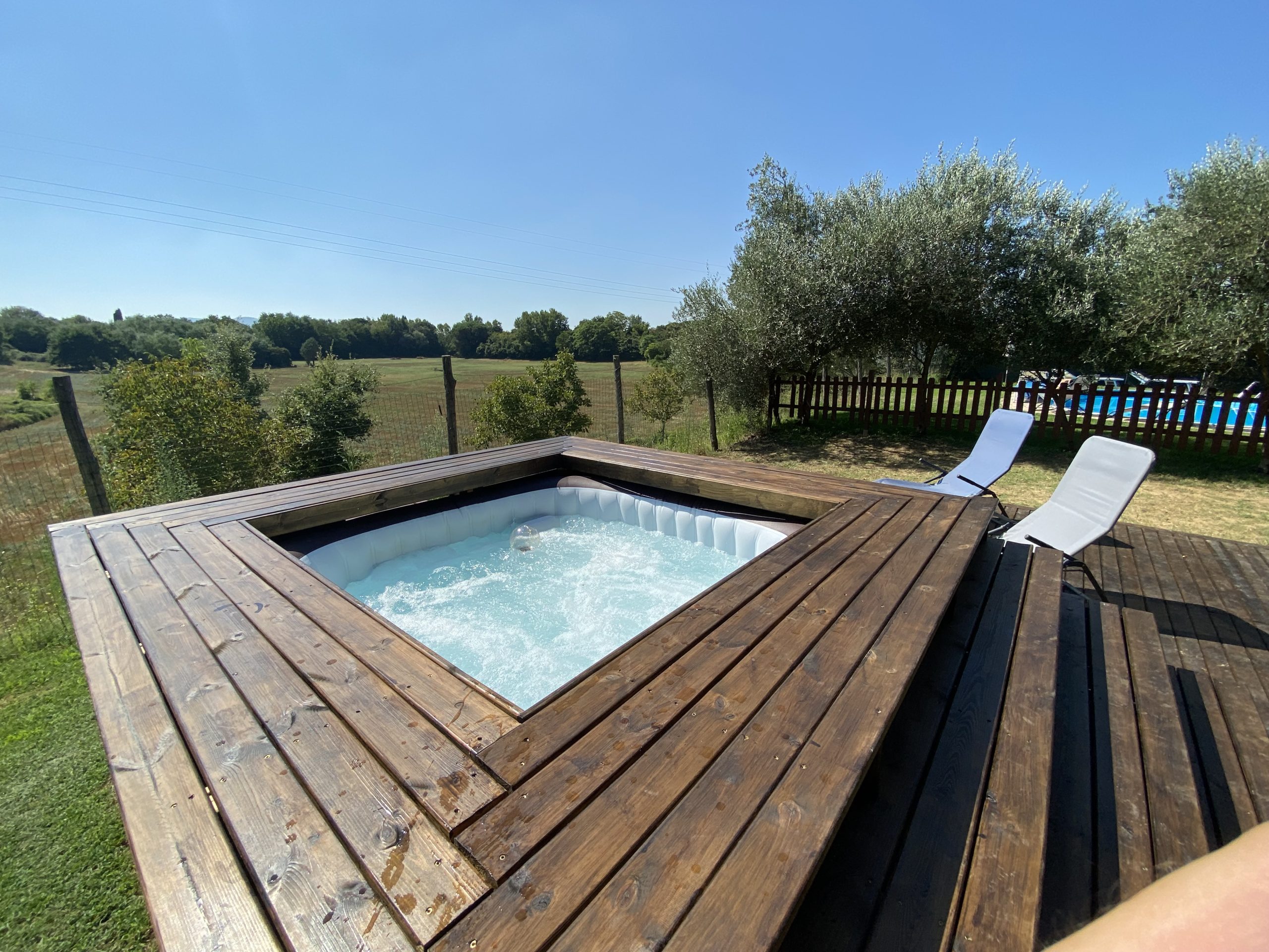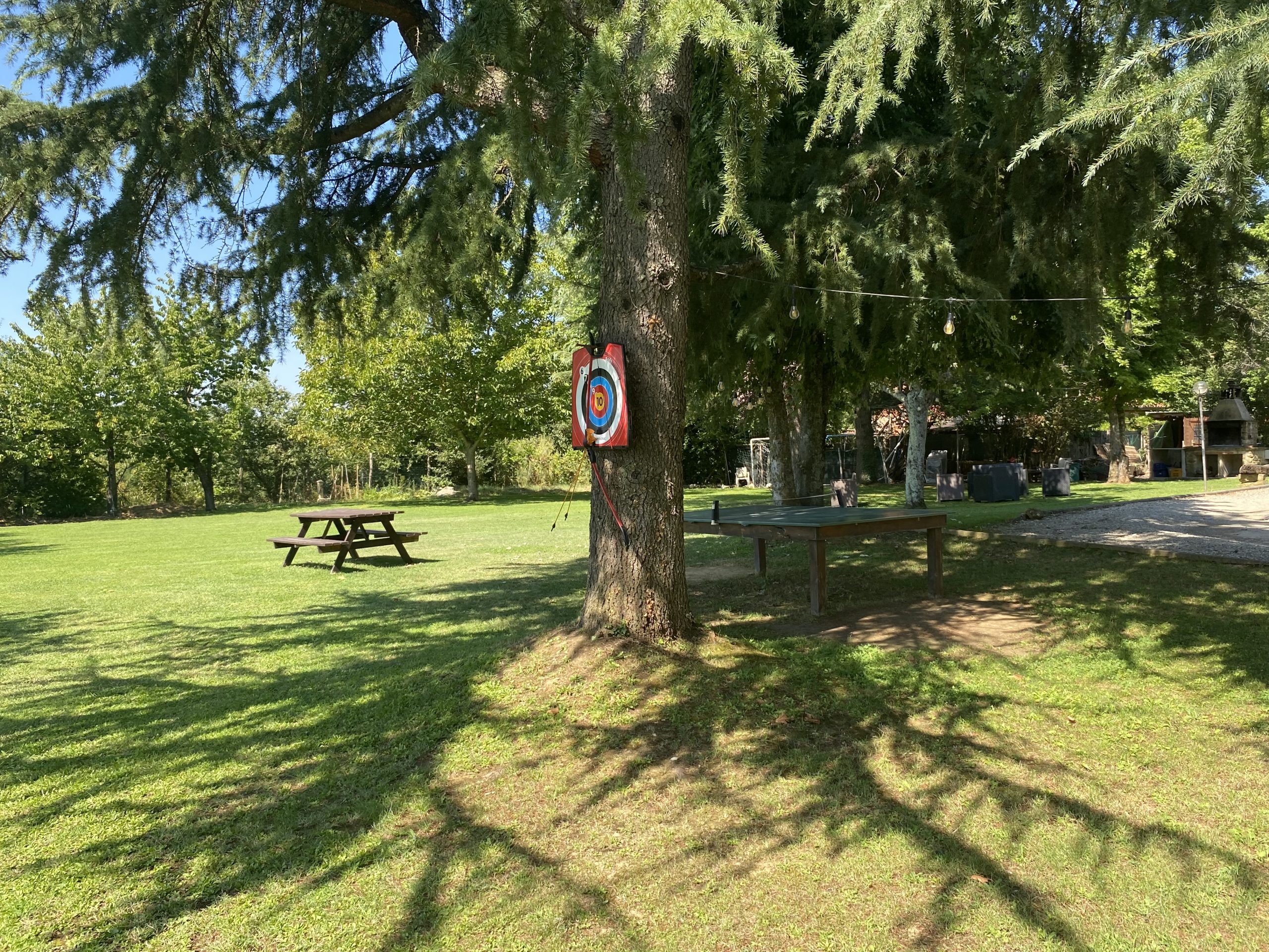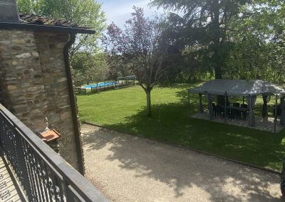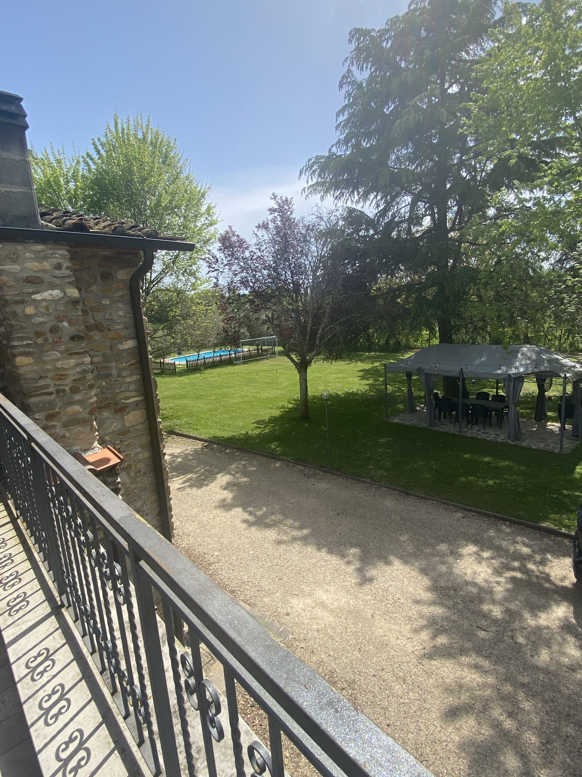 L’edificio è circondato da un parco di 5.000 mq dove è possibile rilassarsi all’ombra di alberi secolari o godere di una splendida piscina recintata con vista sulla campagna.